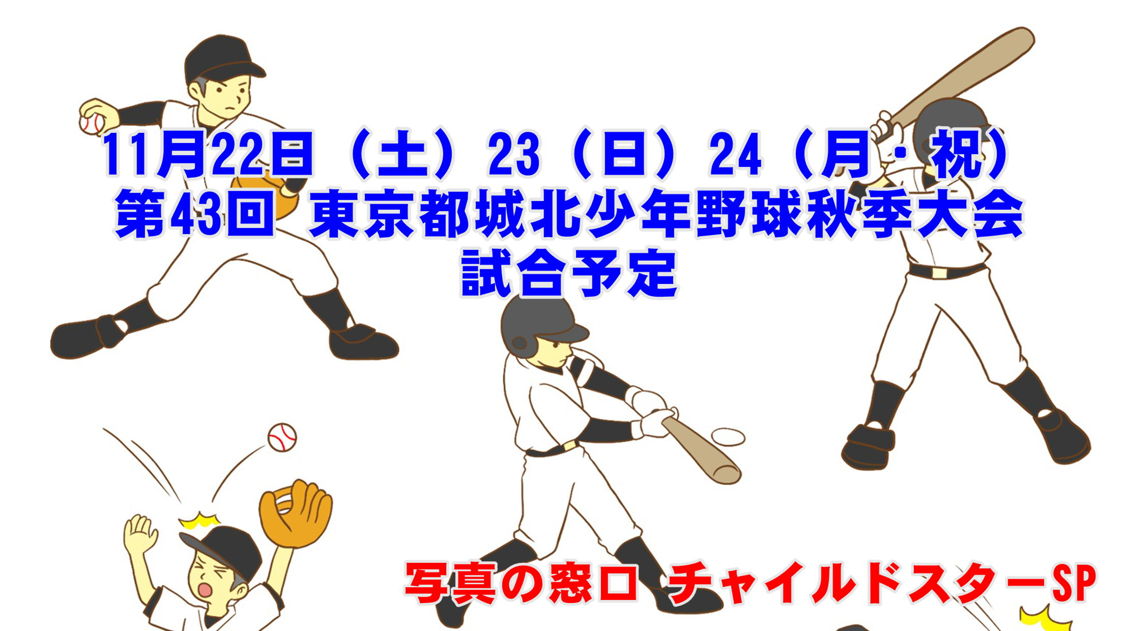 11月22日(土)23日(日)24日(月・祝)第43回 東京都城北少年野球秋季大会試合予定